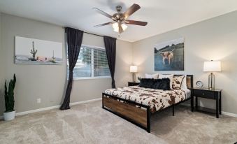 Featuring highrise ceilings, an open floor plan, and luxury furniture/amenities, our home was designed with an extravagant guest experience top of mind! Our gorgeous kitchen bolsters stainless appliances, soft-close cabinets, and a breakfast bar. The cabinets are equipped with essential cooking and dining ware. While breakfast is cooking, don't forget to grab some Starbucks from the coffee bar! Our tasteful selection ranges from Doughnut Shop to Starbucks, Keurig to French Press.
