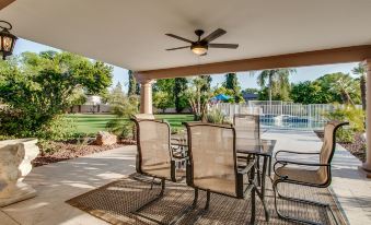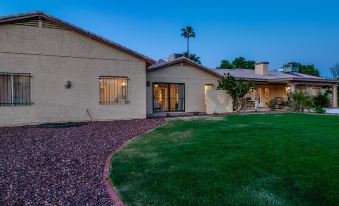 Sprawling Mesa 7 bdrm family home on over an acre lot The perfect retreat for large families looking to unwind in the Arizona sun. Get in a game of tennis on the full sized sport court or cool off in the sparkling pool fenced pool. Home is over 4500 sq ft which makes for plenty of room for larger groups. Located in a quiet residential neighborhood for that peace and quiet you've been seeking. Convenient location close to 60 Freeway! A Can't miss on your next trip to the desert