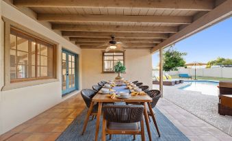 Welcome to the luxurious 5BR 3Bath getaway in the serene area of Mesa, AZ. Escape the crowds and enjoy the stunning ambiance of the private backyard and the entertaining game room while being close to fantastic restaurants, shops, attractions, and landmarks.