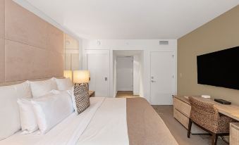 Thoughtfully designed for both short stays and extended visits, the suite offers tranquility and style in equal measure. From the natural wood accents to the soft neutral tones, every detail evokes comfort and coastal calm. It’s ideal for couples, solo travelers, wellness guests, or business professionals seeking a luxurious Miami Beach escape.
