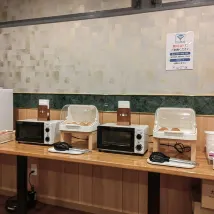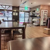 식사 서비스는 없습니다만, 호텔과 같은 구획에 오코노미야키 가게 「테짱」이 있고, 역 앞에는 슈퍼와 도서관이 함께 된 새로운 건물이 있어, 식재료 입수에도 체재중의 빈 시간을 보내는 장소도 틀림없습니다.