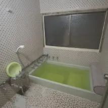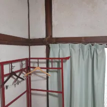 이곳은 게스트하우스입니다. 제 방은 복도 끝에 있었습니다. 문 밖에 세면대가 네 개 있었지만, 안에는 개인 화장실이 없어서 밖에 있는 공용 공간에서 씻었습니다. 샤워는 여자 목욕탕(사진)에서 했습니다. 다행히 제가 묵는 동안 손님이 많지 않아서 시설이 매우 깨끗했고, 사용할 시간도 충분했습니다.