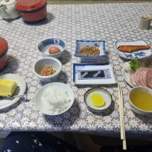 매우 쇼와식 여관이며, 주인이 매우 친절합니다. 언어의 장벽이 있지만 기본적으로 의사소통에는 문제가 없습니다. 아침 식사는 매우 호화롭고 양이 많았습니다. 배가 불러도 남은 음식을 남기기가 부끄러웠습니다. 다행히 남편이 모든 것을 처리해 주었습니다.