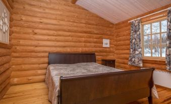Log cabin 1977, extended 1993, renovated 2013, kitchenette, living room with 130 cm wide spreadable bed (while spread, there is space for two), bedroom (12.5 m²) with double bed, another bedroom (10 m²) with spreadable sofa (while spread, there space for two), washroom with shower and WC, covered terrace. Another entrance to the bedroom and washroom is through the first bedroom.