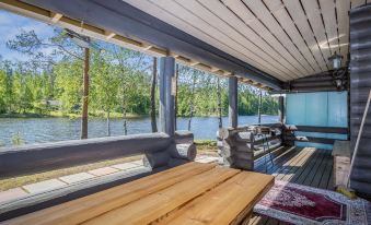 Sauna and dressing room, wood-burning sauna stove as well as shower in the sauna. Entrance to the sauna is from the terrace. Distance to the water is 5 m from the sauna’s terrace.