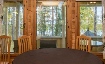 Separate sauna 2013 (28 m²), sauna (wood stove), washroom with shower and toilet, living room with a fully equipped kitchen, a glazed veranda, partly glazed terrace.