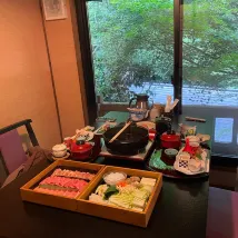 모든 것이 훌륭했습니다. 전용 온천이 있는 매우 넓은 객실. 음식은 맛있었어요.