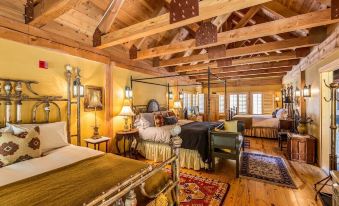 The room at the top right of the stairs is a detached bedroom with three high quality beds (one king and two queens). The beds feature all new linens including Pendleton wool blankets and Brooklinen down comforters/sheets.