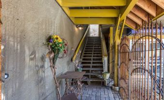 The apartment, on the second floor of the historic building, is accessed by an outside (covered) set of stairs and is the only apartment in the building. The apartment is made of up two separate rooms and an outdoor deck.