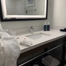 중심가에 위치하여 매우 좋습니다. CN 타워와 항구와 가깝습니다. 바와 레스토랑도 많습니다. 장애인용 샤워 시설이 완비된 객실도 있습니다. 조용하고 깨끗하며 편안합니다. 테이블 서비스가 포함된 맛있는 조식도 훌륭합니다. 직원들도 친절합니다. 훌륭한 호텔입니다.