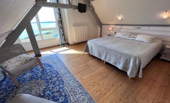 - 4 bedrooms: 1 with 1 double bed, 3 with 2 twin beds. The 2 bedrooms upstairs overlook the sea