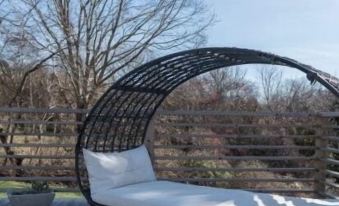 The main living room has a projector that is connected to apple TV so you can watch movies on the entire wall. It also has a fireplace for the fall and winter.