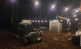 Enjoy this off grid glamping experience. Starlink internet provides fast and reliable internet to those that may be looking to have Zoom meetings or other internet needs. Sink and instant hot water heater bring conveniences to this glamping experience. We provide 5 gallons of water for each stay. Bring your own water for drinking and lighter/matches for lighting the woodstove/fire pit! Please be sure to shower at home because you'll be bathing the old fashioned way with a sink and a wash cloth. Sit in front of the wood stove (pre-split wood provided) ***split wood is intended for woodstove only*** or open fire pit (feel free to burn the logs/branches laying around the property). We provide pots and pans to be used on the propane camping stove. Refrigerator, Smart TV (Netflix, Prime, Youtube), DVD Player, Microwave (Use sparingly because it runs down the battery quickly). 2 lofts- 1 side has a full bed- the other has a twin bed. Linens are provided. Couch has a fold out full bed. Explore the private 7 acres of rocky woodlands and a seasonal small stream. Being out of the city allows for incredible Moon and Star gazing experiences on the clear nights in the mountains!