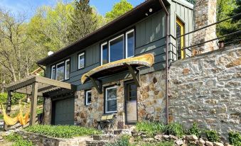 We considered calling this house “The View With Some Rooms,” but settled on The Lodge. One of a few units on the property, this private 3-bedroom house includes a rooftop dome (which serves as the third bedroom). From almost every spot, enjoy the jaw-dropping scenery of endless mountains, three states, and the Potomac River.