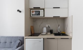 The hotel provides an opportunity for guests to stay in duplex rooms of various types and sizes. In addition to double rooms, the hotel also has rooms that are suitable for families and companies, which consist of three and four people. Regardless of the type, all rooms are equipped with a kitchenette for self-cooking, a bathroom, a TV, an Alice speaker and other amenities.