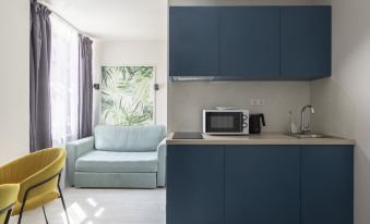 The hotel offers comfortable rooms of various categories with fully equipped mini-kitchens. The modern apartments are equipped with an individual bathroom with shower, hairdryer and toiletries, a comfortable bed and a TV with built-in Smart TV.