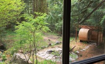 We loved this cabin the moment we walked in the door! The cabin is well appointed, cozy, and inviting. The glass-fronted wood stove, radiant heat floors, walk-in shower with a forest view, comfortable bed (again with forest view), and the river trail were all highlights. We can't wait to return!