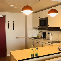 호텔 객실은 새롭게 단장되었으며 매우 깨끗하고 시설이 충분하며 개방형 주방을 갖추고 있습니다. 그러나 방의 환기가 매우 불량하고 에어컨이 작동하지 않으며 화장실 환기 시스템도 작동하지 않습니다. ⇔ 피트니스 장비가 거의 없으며 호텔에는 수영장이나 사우나 장비가 없습니다. 첫날 밤 호텔 직원이 부족하고 프런트 데스크에 직원이 없었습니다. 로비 문이 잠긴 후 호텔에 들어갈 수 있도록 문을 열어주는 사람이 없어 호텔 밖에서 20분 동안 기다려야 했습니다.