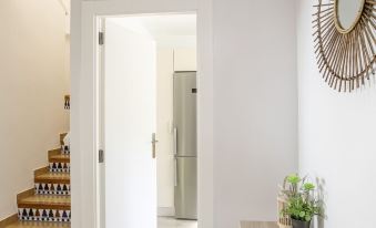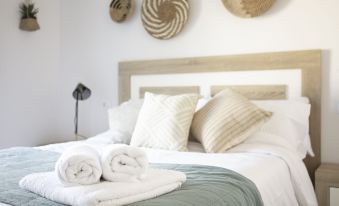 Follow the original Spanish tiles upstairs and you will find two good sized bedrooms and a full bathroom with bath, shower and his & hers vanity unit. You won’t be fighting over the bathroom mirror at Casa Helios!
