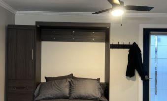 Perched above the Lakeside cafe, the Nest offers a contemporary studio apartment with Murphy bed and a convertible sofa to maximize space. Minutes from Lake Michigan and downtown, centrally located to get the full muskegon experience.About pets:Pets allowed: limit 1 total.About checkOut:Check out before 11:00 AM.About children:Children allowed: ages 0-17.About checkIn:Check in after 3:00 PM.About smoking:Smoking is not permitted.About minBookingAge:Minimum age to rent: 18.About events:No events allowed.
