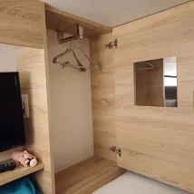 캡슐룸안에 옷 걸어둘수있는 공간이 있고 옷걸이가 2개 있음. 파우더룸에 탈의실이 두 군데 있어서 캡슐룸 안에서 옷 갈아입기 불편한 사람들에게는 편할 듯...