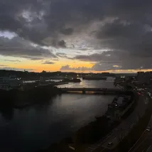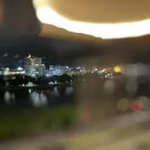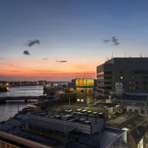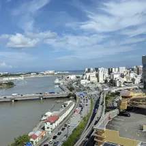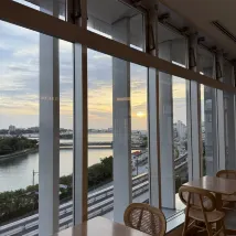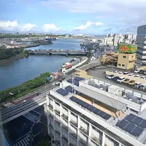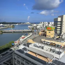 국제거리에서 도보 20분 정도 거리라 좀 멀게 느껴졌습니다. 하지만 돈키호테와 같은 건물에 있어서 쇼핑이 매우 편리했습니다. 근처에 패밀리마트, 세븐일레븐도 있었고, 모노레일 역까지도 도보 5분밖에 걸리지 않아 좋았습니다. 725호 객실에서는 강변 풍경이 아주 조금만 보여서 좀 아쉬웠습니다. 사진 속 강변 풍경은 로비에서 찍은 것입니다.