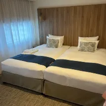 이전에 같은 브랜드의 다른 호텔에도 묵어봤는데, 객실 내부 시설에 대해 매우 만족했었습니다. 이번에 예약한 객실은 싱글 침대 두 개와 소파 베드 하나로 구성되어 성인 세 명이 머물기에 매우 적합했습니다. 세탁 건조기, 미니 냉장고, 전자레인지 등도 구비되어 있었습니다. 객실 공간도 넓고 쾌적하여 매우 편안하게 이용했습니다. 사진과도 매우 흡사했습니다.