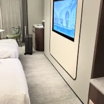 아이들과 부모님과 함께 여행 중이었는데 트윈베드와 킹베드를 예약했는데 일찍 도착해서 3층에 있는 핸드오버 스위트룸을 받았습니다. 코너 소파. 별도의 방에 있으면 비좁아 보일 것입니다. 아기와 함께 여행할 수 있는 방은 여전히 매우 좋고, 아기가 돌아다닐 수 있는 방법을 제공합니다. 방은 작고 스마트 화장실과 TV에서 화면을 투사할 수 있어 모두 젊은 사람들의 습관에 적합합니다.