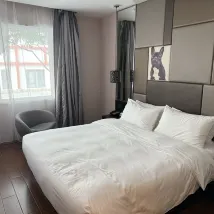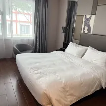 The hotel was nicely quiet, modern and clean. Although it is located in the south of Nanjing, the city is easy and fast to reach with line 1 or a Didi. The hotel people spoke no English, but this wasn't a problem for me. I could leave my luggage there, even though I already checked out. Very friendly people there.