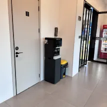 3층으로 바로 가는 엘리베이터가 있습니다. 입구에는 테이크아웃과 짐을 보관할 수 있는 공간이 마련되어 있습니다. 프런트 데스크 직원들은 정말 친절했습니다. 공용 공간은 넓고, 일광욕을 즐기며 시원한 바람을 느끼기에 좋은 넓은 야외 테라스가 있습니다. 특히 전자레인지, 밥솥, 기타 주방용품이 완비된 주방이 매우 마음에 들었습니다. 재료만 가져오시면 됩니다.