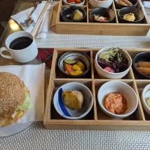 08:00~9:30에는 가벼운 식사, 라면, 따뜻한 음료와 차가운 음료가 제공됩니다.