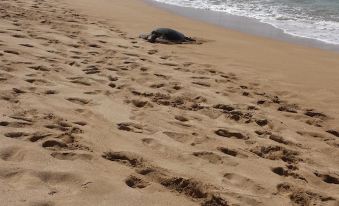 This condo has it all---great water views and views of green sea turtles and monk seals. The floor to ceiling window in the living area is extra special. We watched sea turtles from the dining table. The pool is huge and the grounds are very well-maintained. The complex is quiet. Perfect for a couple.