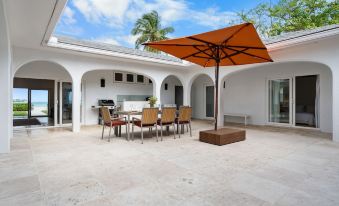 Spacious, beach-front home in oasis-like setting. Perfect for a tropical getaway or a chance to relax and recharge. Enjoy stunning panoramic views of the ocean from the main living area, kitchen, dining areas, and both primary bedrooms. Relax in one of the many outdoor areas, whether it's pool side, ocean front, or in the outdoor dining area.