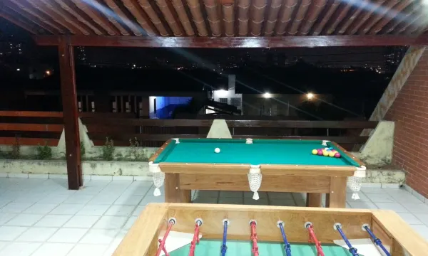 We have 03 suites on the 1st floor, 01 suite: It has a double bed and two single, 02 suite 01 double bed and 02 single, 03 suite, 01 double bed and 01 single, downstairs are 03 suite and a single room , 01 suite: 02 bunk beds and 03 single beds, 02 suite: 02 bunk beds and 02 single beds, 01 single room with 02 bunk beds, and a computer with internet wif. A small suite with a double bed, all have air conditioning. We have a video game room and a room with foosball, billiards and table tennis. Part security, we have alarm with sensors, electric fence and 02 infrared cameras, facing the side of the outside and front of the house, recorded on the office computer. Garage for 05 cars and leisure area with barbecue and 02 swimming pools, one adult and children.About pets:Pets allowed: less than 22 lbs per pet (limit 2 pets total).About checkOut:Check out before 11:00 AM.About children:Children allowed: ages 0-17.About checkIn:Check in after 4:00 PM.About smoking:Smoking allowed: in designated areas.About minBookingAge:Minimum age to rent: 25.About events:No events allowed.