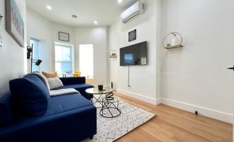 Experience our modern 1BR/1 BATH Condo near Prospect Park, hosted by Sacred Space Style. Perfect for up to 4 guests, this condo includes a full-size kitchen, a cozy common area with a living room and dining space, a spacious bedroom with a Queen-size bed, and a large bathroom with a rainfall shower head and soaking tub. The well-appointed kitchen offers coffee, tea, spices, cookware, and bakeware for your culinary needs. The common area provides entertainment with a full-size sofa bed and a 55”