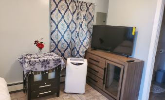 Cozy studio sleeps 4 , in private home. Private door and entrance to apartment at the rear of the home. One queen size bed and a queen size sleeper sofa .. The studio is fully furnished with a kitchen , no traditional stove, but can still cook with a Cooker Pot . Free Wifi,TV, Netflix , AC..