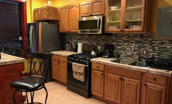 Suite142 1R is a charming 2BR apartment located in the tree lined neighborhood of East Flatbush with close access to Barclay's Center, MetroTech Center, Park Slope, Prospect Park, Brooklyn Museum, Brooklyn Botanical Garden, Brooklyn Navy Yard, and the Brooklyn Cruise Terminal and only 45 minutes from Manhattan. This deluxe rental features two (2) large bedrooms (with a queen-sized bed), ample closet space, a flat screen TV, cable, computer, a DVD player, internet, central A/C, and ceiling fan for extra circulation and comfort. There is also a large living room with a sofa/futon that sleeps one (1). The bathroom is stylishly decorated. We provide complimentary toiletries so you don't have to bring your own. Our kitchen is equipped with a range/oven, refrigerator and microwave/mini-convection oven along with cookware, utensils and dinnerware. Suite142 1R is closely located to the Brooklyn Museum, the Brooklyn Botanical Gardens, Prospect Park (including the Zoo), Brooklyn Academy of Music, the Brooklyn Children’s Museum, Barclays Center, Brooklyn Bridge Park and Eastern Parkway. We are 45 minutes from Downtown Manhattan (Wall Street, One World Trade Center, Battery Park, South Street Seaport and a small hop to Governor’s Island (by ferry from Brooklyn Bridge Park). We verify the identity of first-time guests by photo ID upon arrival. We are walking distance to SUNY Downstate Medical School, Kings County Hospital and Kingsbrook Jewish Medical Center.About pets:No pets allowed.About checkOut:Check out before 11:00 AM.About children:Children allowed: ages 0-17.About customRules:Government ID required within 48hrs of booking.About checkIn:Check in after 11:00 AM.About smoking:Smoking is not permitted.No smoking in the building.About minBookingAge:Minimum age to rent: 21.About events:No events allowed.No parties allowed.