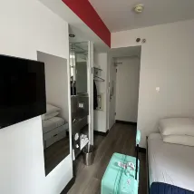 예산이 넉넉하신 분이라면 이 호텔은 피하시는 게 좋습니다. 싱글룸 기준으로 설명하자면, 에어컨이 없어서 여름에 정말 힘들었고, 창밖 소음도 너무 심했습니다. 유일한 장점은 위치가 좋아서 어디든 이동하기 편리했다는 점입니다.