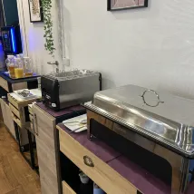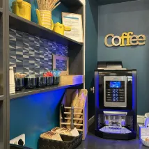 리셉션에는 커피 머신도 있어서 커피나 차를 만들 수 있습니다. 그리고 마실 물을 모아요.
