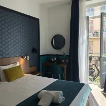 니스 중심가에 있는 작은 호텔로, 객실은 작지만 매우 깨끗하고, 직원들은 친절하며, 커피와 탄산수는 무료입니다.
