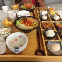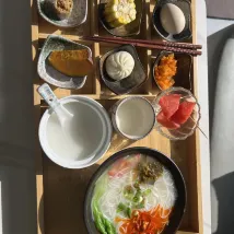 호텔 환경은 매우 좋고, 몸을 담그고 영화를 볼 수 있는 대형 욕조가 있습니다. 밤에는 체크인할 때 끓여준 생강국이 있고, 아침에 아침 안개를 보고 돌아오면 풍성한 아침 식사가 제공됩니다. 체크인 및 체크아웃 시 작은 선물도 제공됩니다. 프론트 데스크의 두 남자는 매우 친절하고 도움이 되었습니다. 체크아웃을 하고 버스를 기다리는 동안 라츄씨는 마실 뜨거운 물을 가져다 주기도 했습니다. 아주 좋은 경험, 강력 추천
