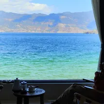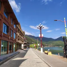 환경이 매우 좋고 위치가 우수합니다. 호반 객실에서는 멀리 루구호와 여신산이 바로 보입니다.