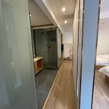 객실은 깨끗하고 정돈되어 있었고, 제가 개인적으로 좋아하는 모던 미니멀리스트 스타일로 꾸며져 있었으며, 공간도 넓었습니다. 화장실, 샤워실, 세면대가 모두 분리되어 있었고, 24시간 온수가 나오는 스마트 변기와 세면도구가 갖춰져 있었습니다. 침구도 깨끗하고 정돈되어 있었고, 쓰레기 봉투와 세면도구는 매일 청소하고 교체해 주었습니다. 호텔은 루구 호숫가에 바로 위치해 있어 로비 바로 앞에 호수가 있어 저녁에 호숫가에 앉아 있는 것이 매우 즐거웠습니다. 주인과 리셉션 직원은 매우 친절했고, 짐을 객실까지 옮겨주는 등 적극적으로 도와주었습니다. 로비는 차를 마시거나 담소를 나누거나 책을 읽거나 서예를 연습하기에 좋은 공간입니다. 호텔에는 매우 온순한 고양이가 있습니다.