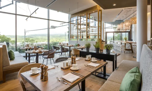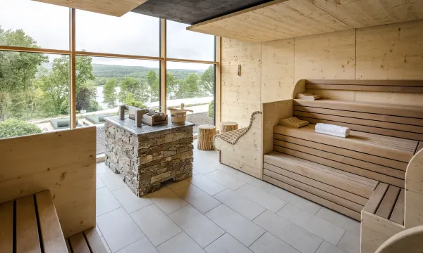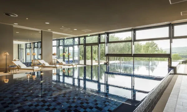 The hotel itself as a whole is fantastic. The inside and outside pools are marvelous. The rooms are very nice and comfortable. The suroundings are exceptionnal with a stunning view on the Bostalsee. There is only one negative point to menion: it’s the food. We hear that from many friends. The menu is complicated with a lot of incredients mixed up in sometimes too heavy souces, which leads to the fact that it can happen that you don’t feel well after the dinner, which happened to us several times. We were told to order « à la carte » what we did not do…big mistake. The breakfast however is great whith a lot of choice. A part from the food problem, we can only recommend this hotel.