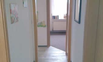 Our apartment is located in a quiet side street on the upper floor of a detached house with separate entrance. The apartment was previously rented out and was renovated in February 2013 and equipped with new furniture.