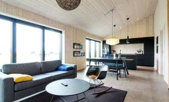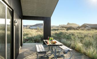 Single-family house, built in 2017. 250 m from the sea. Private: natural state property 1'397 m2. Terrace (57 m2). In the house: sauna, washing machine, tumble dryer. Parking at the house. Grocery 1.5 km. The owner does not accept any youth groups. "Fannie" - 250m from the sea", 3-room house 120 m2. Object suitable for 8 adults + 1 child. Living room with TV and radio. 1 room with 1 double bed. 1 room with 1 double bed. Open gallery, 1 room with 2 beds and 2 sleeping facilities. Kitchen (oven, dishwasher, 4 induction hot plates, microwave, freezer). 2 showers/WC. Terrace 20 m2, roofed. Facilities: children's high chair, baby cot. Internet (WiFi). Please note: non-smokers only. Maximum 2 pets/ dogs allowed. Bookings accepted for holiday purposes only. 860-25426