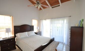 THE BEDROOMS: Two airy bedrooms on upper level, one king and the other queen size beds, great views and wonderful breezes. The third bedroom perfectly sited on the beach level for aiding accessibility needs.