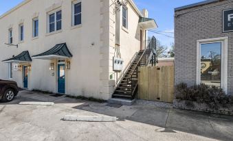 Located on the second floor of a retail building housing a bespoke jewelry store, accessible by a flight of exterior stairs, "The Contemporary" awaits to dazzle you with its unique charm. ✨