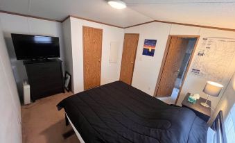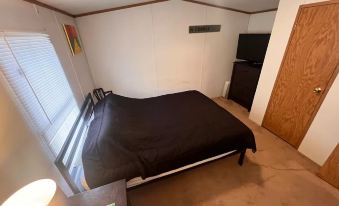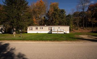 The location is excellent. The inside of home is as described. Nice living room, kitchen, bathroom, and bedroom. Had many things needed. Kitchen well stocked, linens on beds, towels to use for bathrooms. Dated but clean and comfortable. Neighborhood was nice and quiet. Only drawback for us was the outside. Lawn was at least a foot tall. There's a fire pit but would have to sit in tall grass to use. Out back messy to bring dogs out so we crossed street and went to train tracks. I would go again though for the location and comfort of the mobile home. Also, owner very helpful and responds quickly.