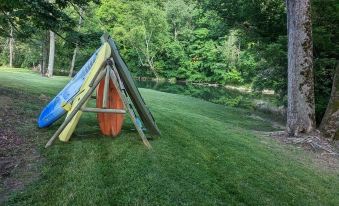Beautifully set-up home with lots of thoughtful touches. Most of our time was spent outdoors enjoying the river, hot tub, and the other outdoor amenities. Great for kids as the river is slow enough in parts for wading while also supporting adults in kayaks.